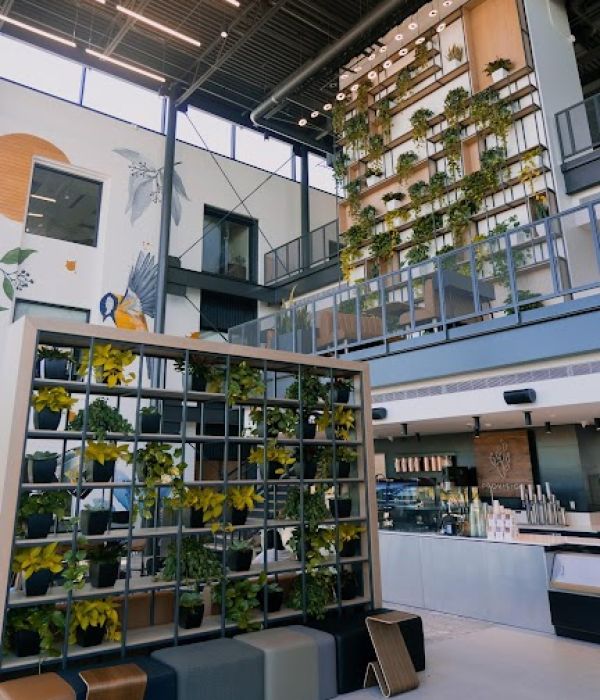 huge ceilings + great food + outlets for laptops + loads of plants and light, midtown